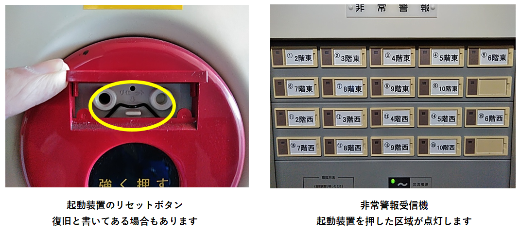非常警報器具は先ほど説明したように押しボタンを自身で押す事で非常ベルが鳴動します。