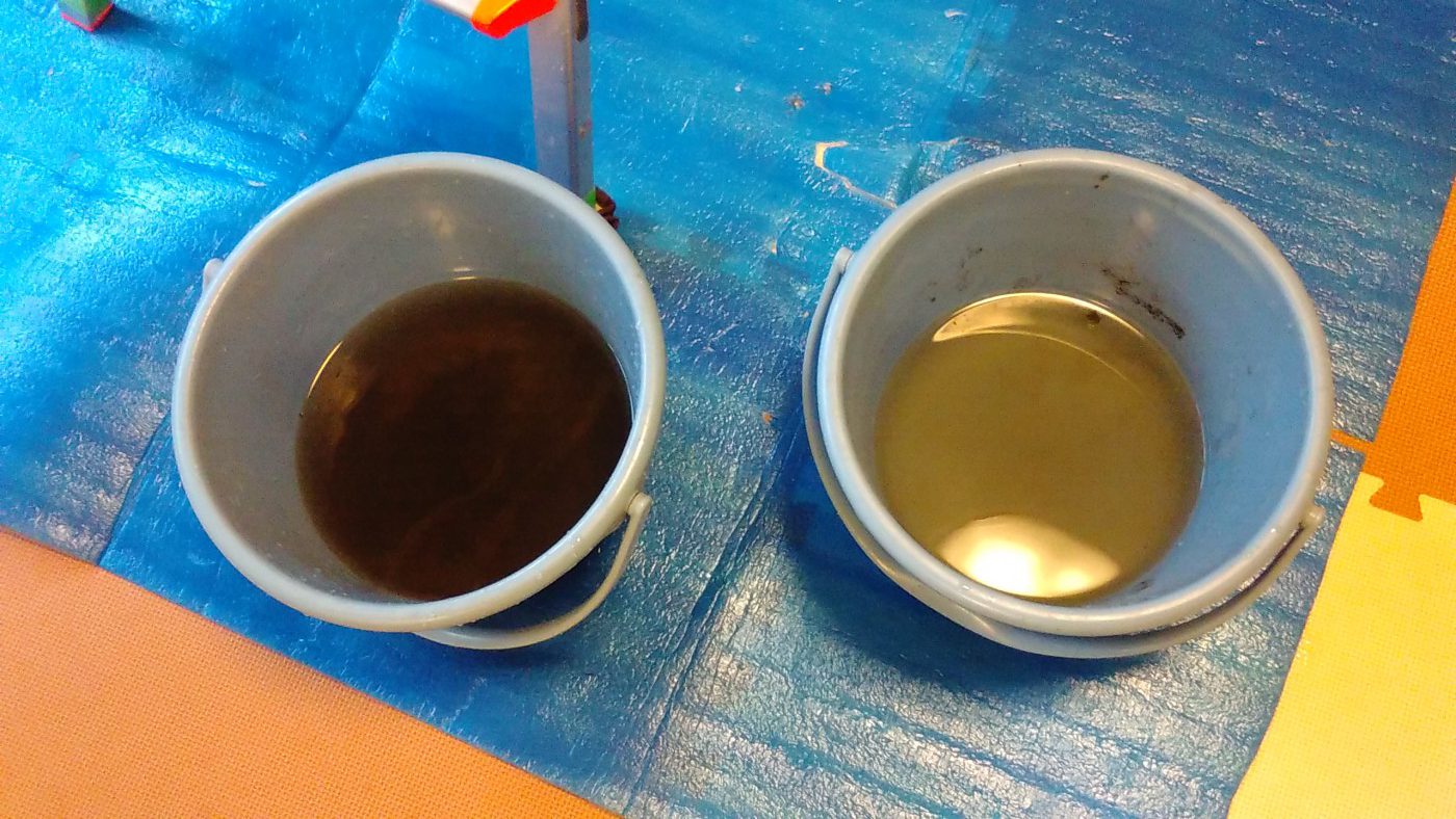 使用頻度の高いリビング(左のバケツ)はかなり汚れが溜まっており、カビも発生していました・・・