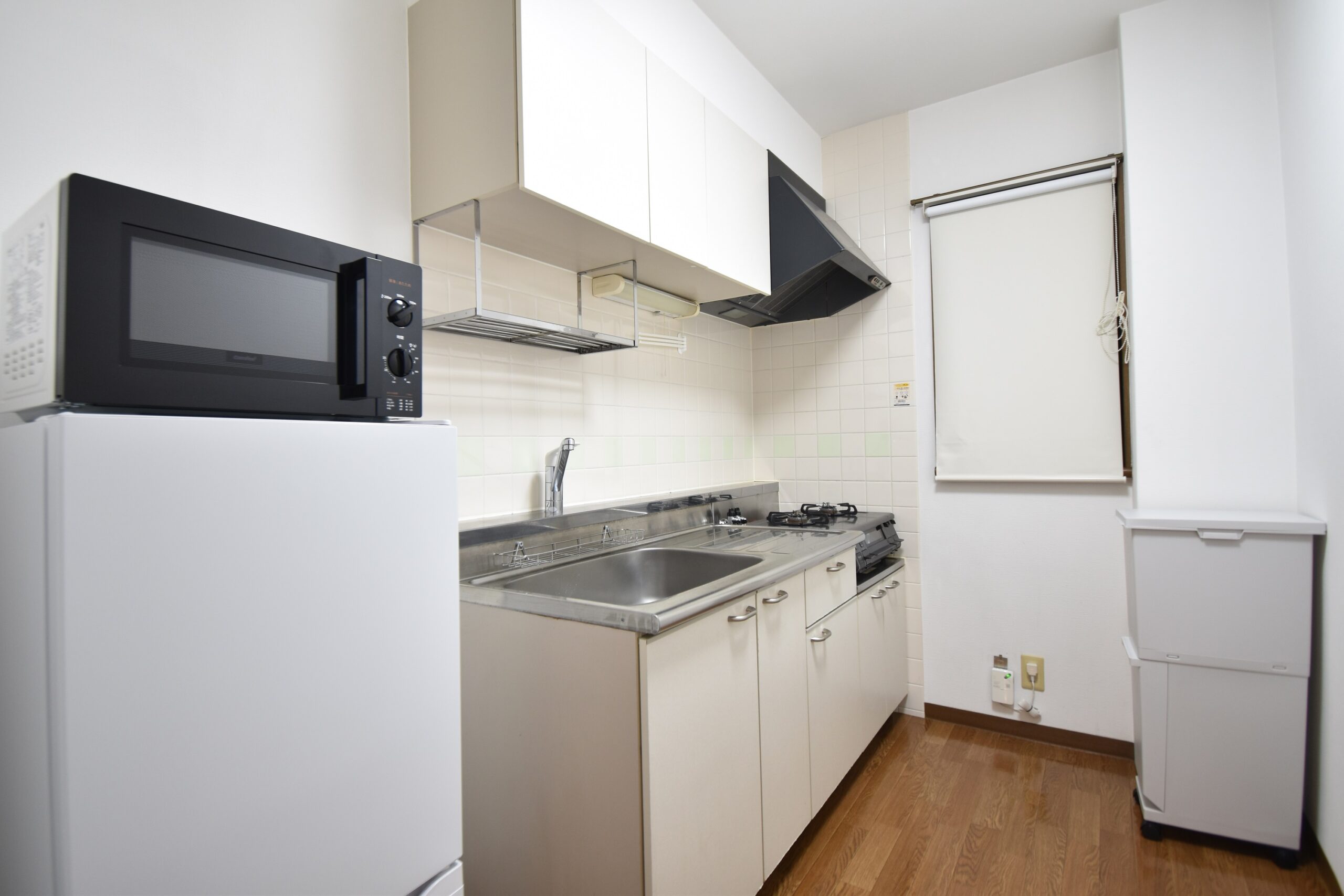 ・キッチン(2口ガスコンロ・冷蔵庫・電子レンジ・電気ケトル・炊飯器)
