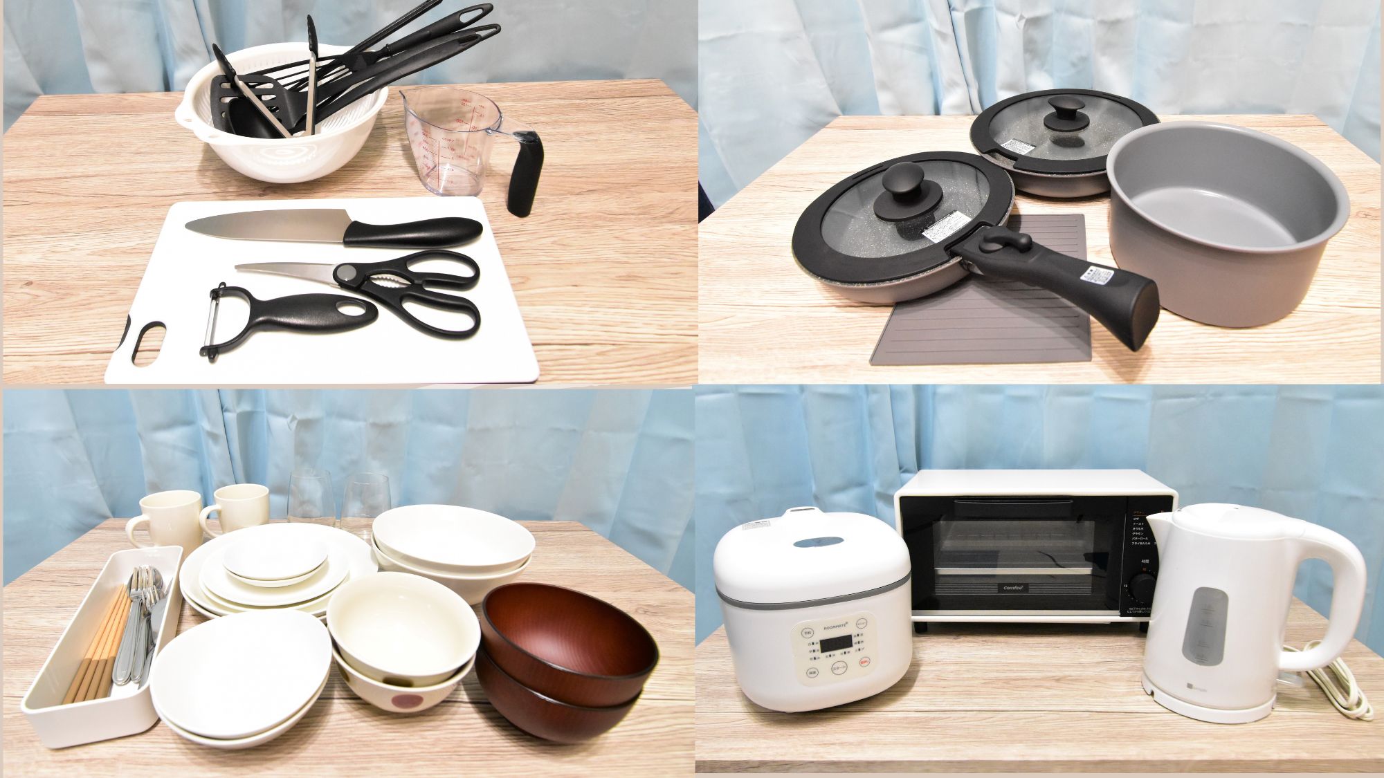 例えば、家電製品(冷蔵庫や電子レンジ、電気ケトル)やキッチン、洗濯機も