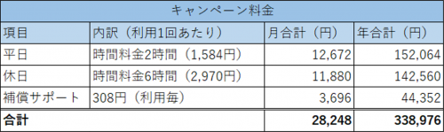 通常料金の場合と、キャンペーン料金の場合の2パターンで金額を出していきます!