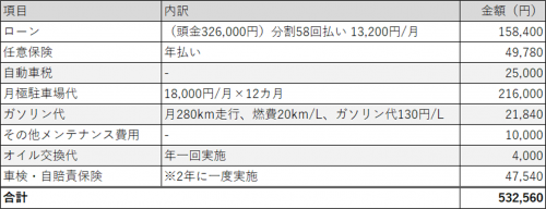 今回は当社のカーシェアを利用した場合の金額を出します。