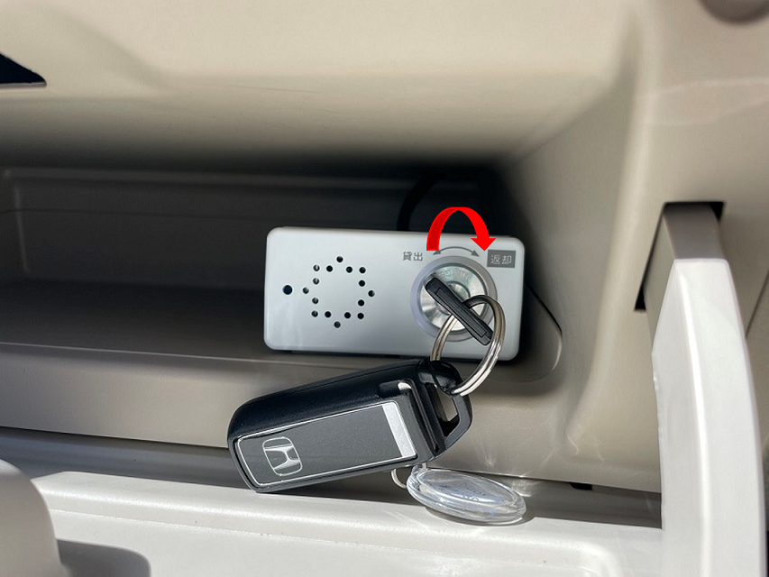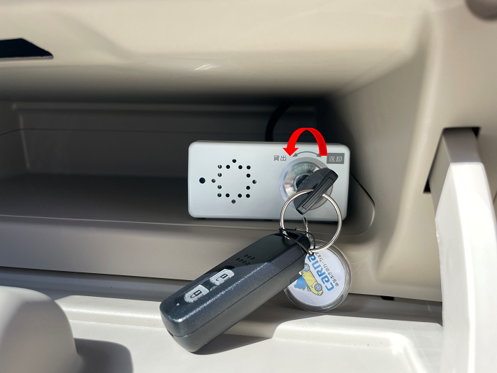 車の鍵があります。「貸出」に回して鍵を取り出すと、後は通常の車としてご利用いただけます!