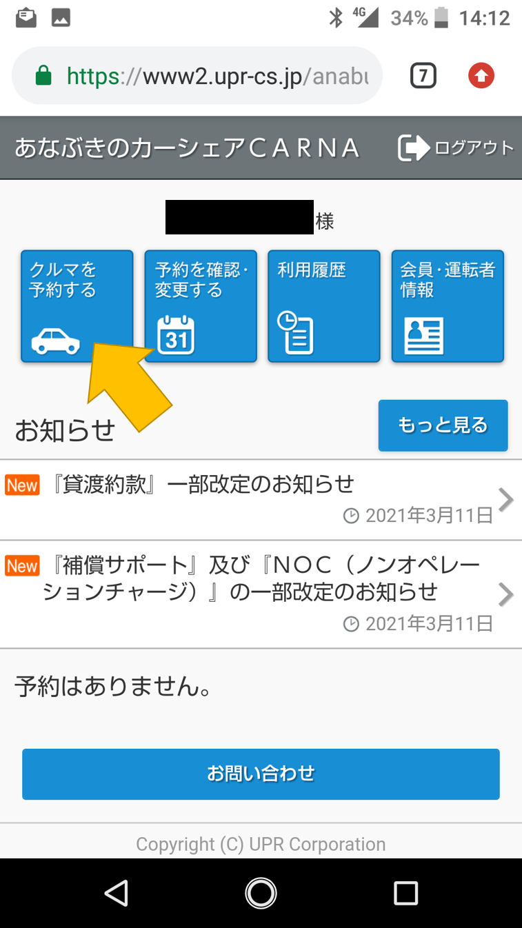 それではいよいよ車を予約・利用していきます!