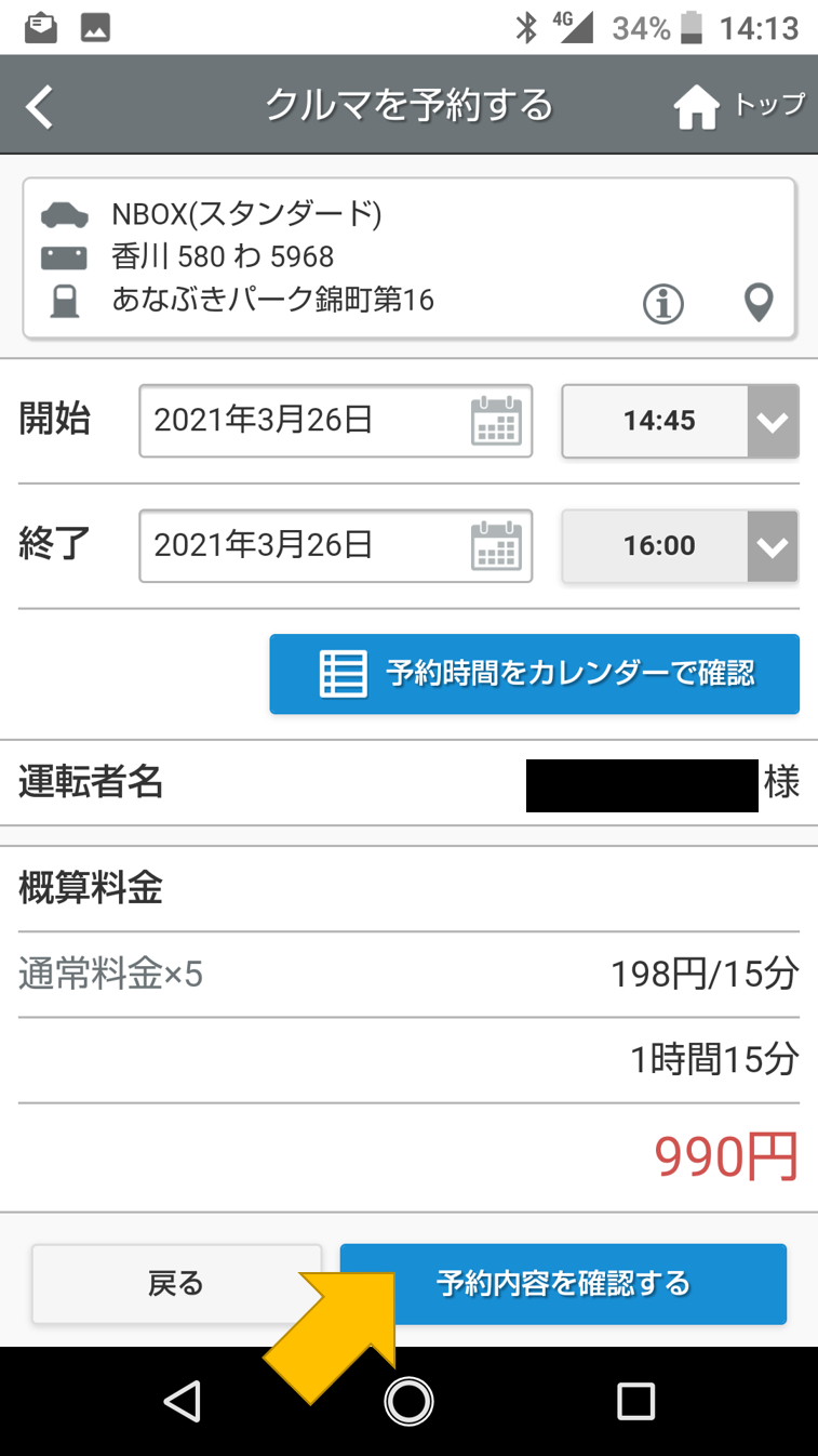 「この内容で予約する」を押して、予約が完了しました!