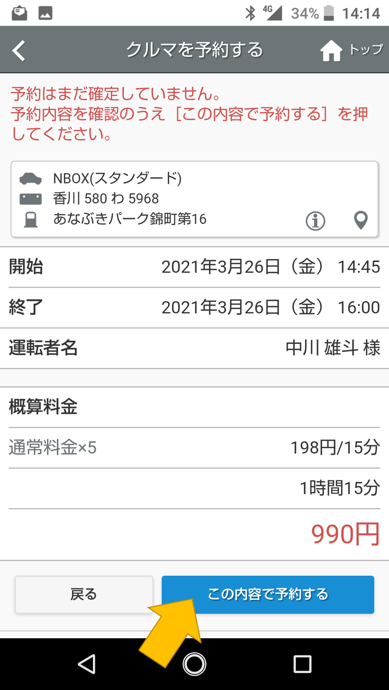 「この車両を予約」を押してください。