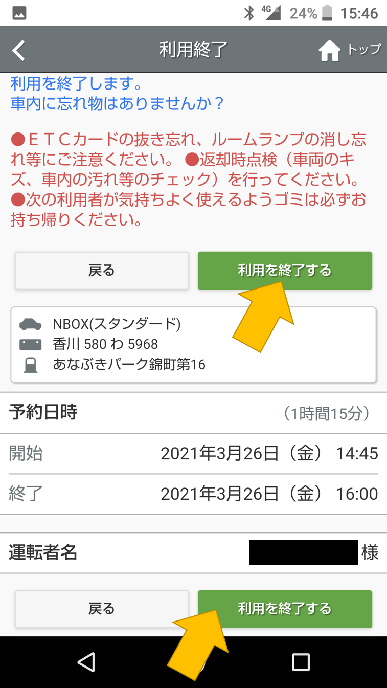 ステーションに戻ってきたら、車を返却します。
