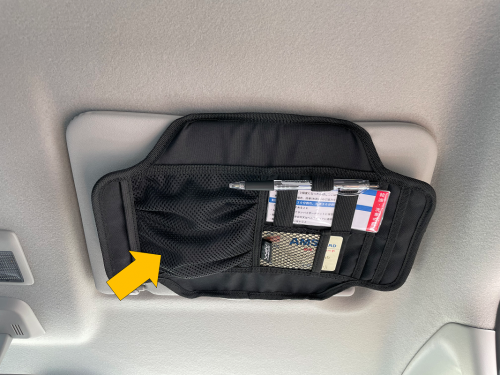 給油・洗車を行いましたら、領収証に記名し、写真矢印のポケットに保管してください。