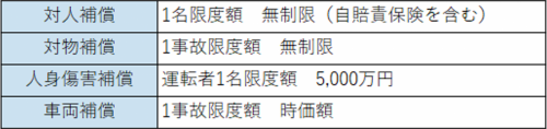 全車両、以下の内容の保険に加入しており、別途料金の負担はありません。万が一の時も安心です!