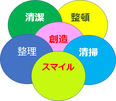 6Sとは・・整理・整頓・清掃・清潔の4つの頭文字Sと、創造とスマイルの2つのSを加えた6Sの頭文字から付いた活動です。