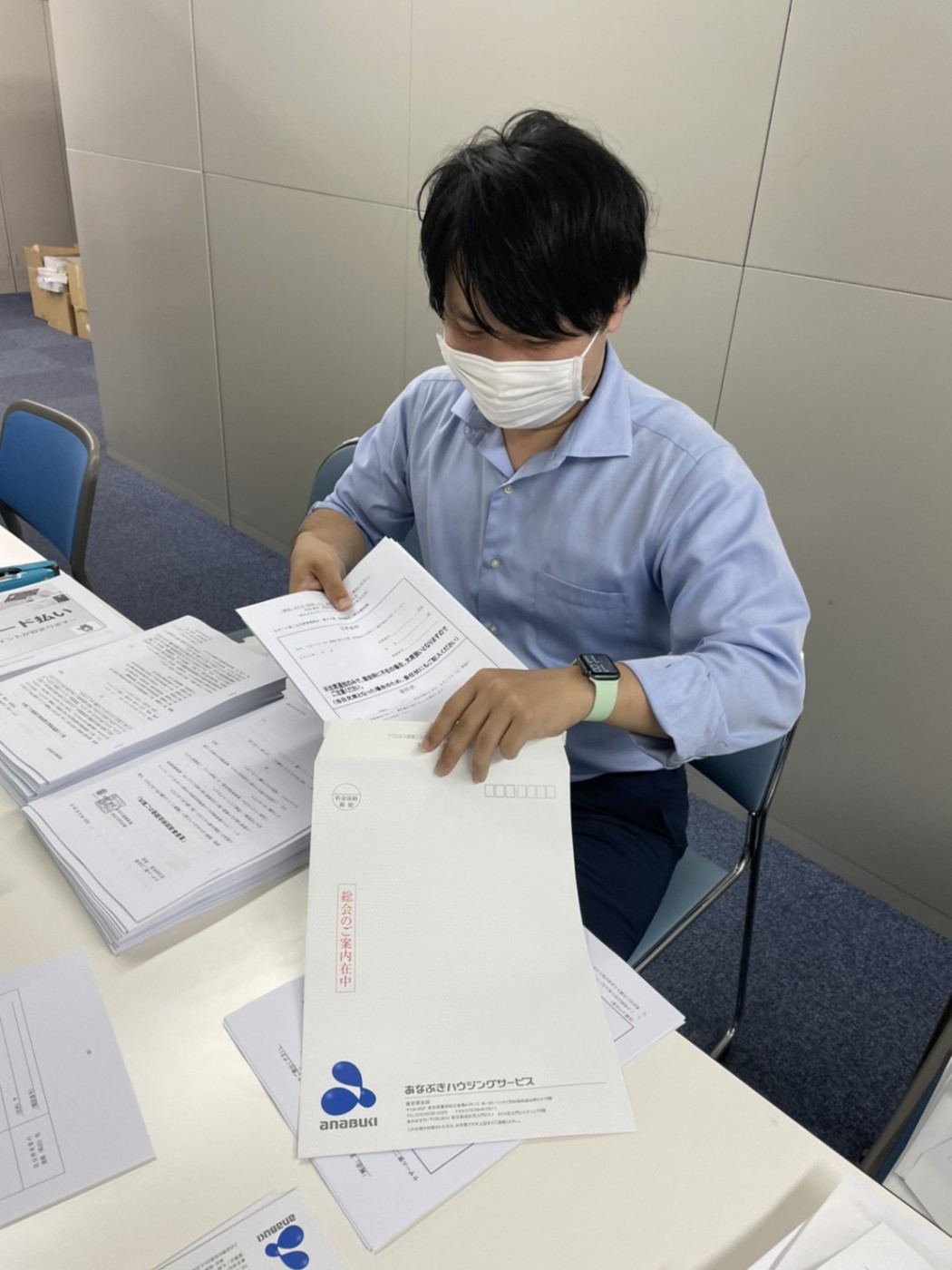 規模の大きいマンションとなると200戸を超えるものもあるので、担当者1人だけでは資料封入の作業が終わりません…