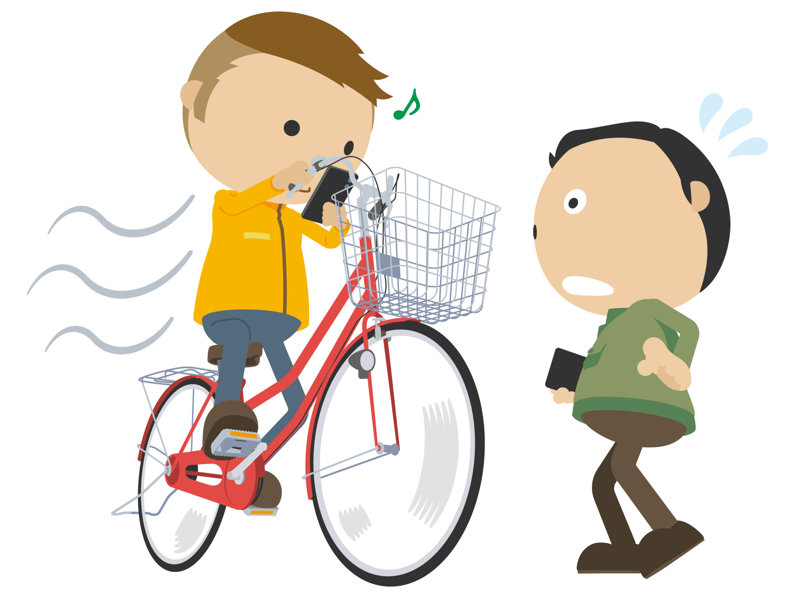 自転車走行中はスマートフォンを使用せず、周囲の音を聞き取れる状態で、常に安全確認を怠らないようにしましょう!