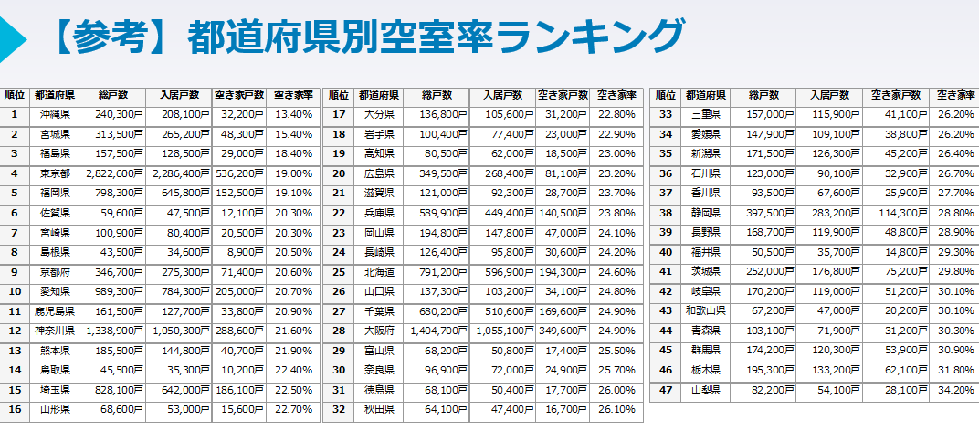 どの都道府県にも言えることですが、お部屋探しの総数をはるかに超える空室数があるのが実情です。