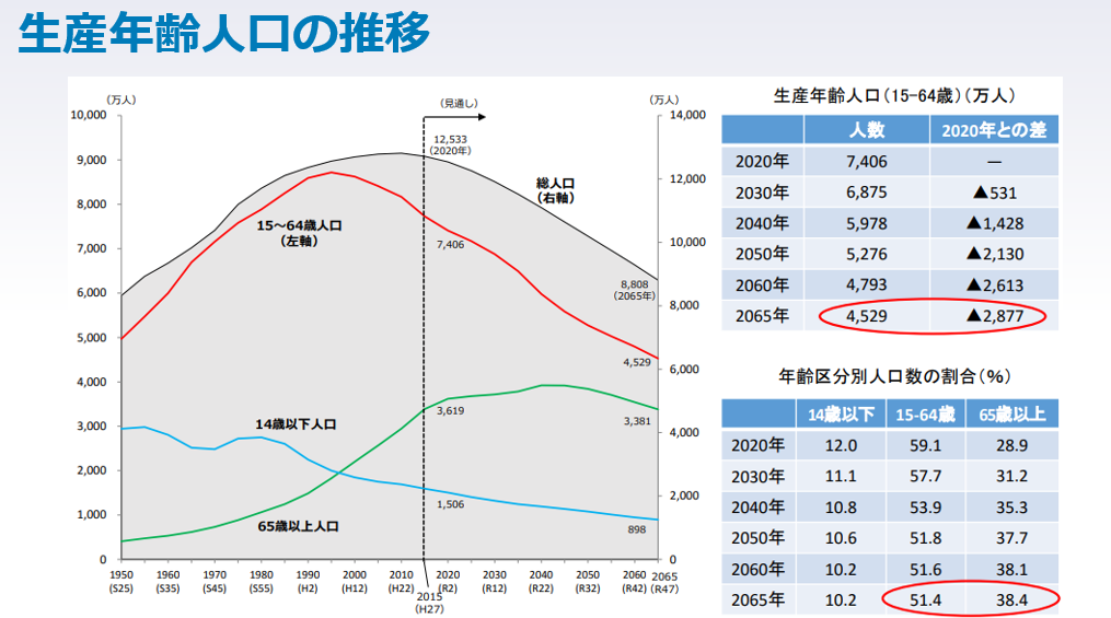 入居者属性に近いといわれる生産年齢人口は、2030年には530万人減少、2040年には1400万人も減少し、2050年には30%近く減少することになります。