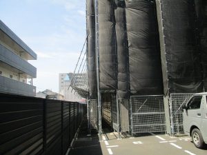 工事の最初に足場を組み立てるため資材を積んだトラックやレッカー車が入場してくるうえ、マンションの周囲にぐるりと足場が設置され、物理的に車を駐車するスペースが減少するからです。