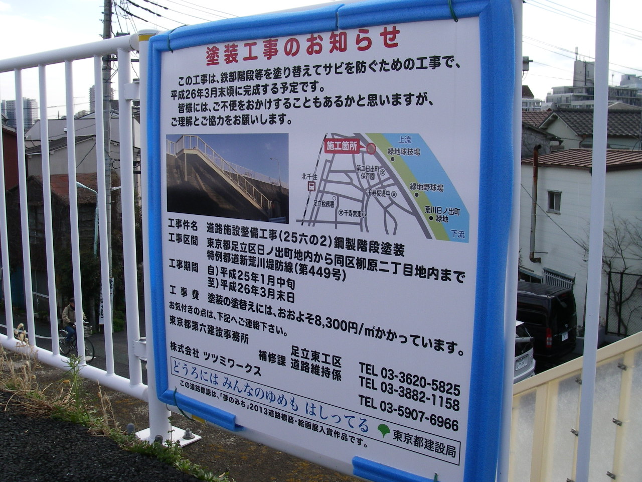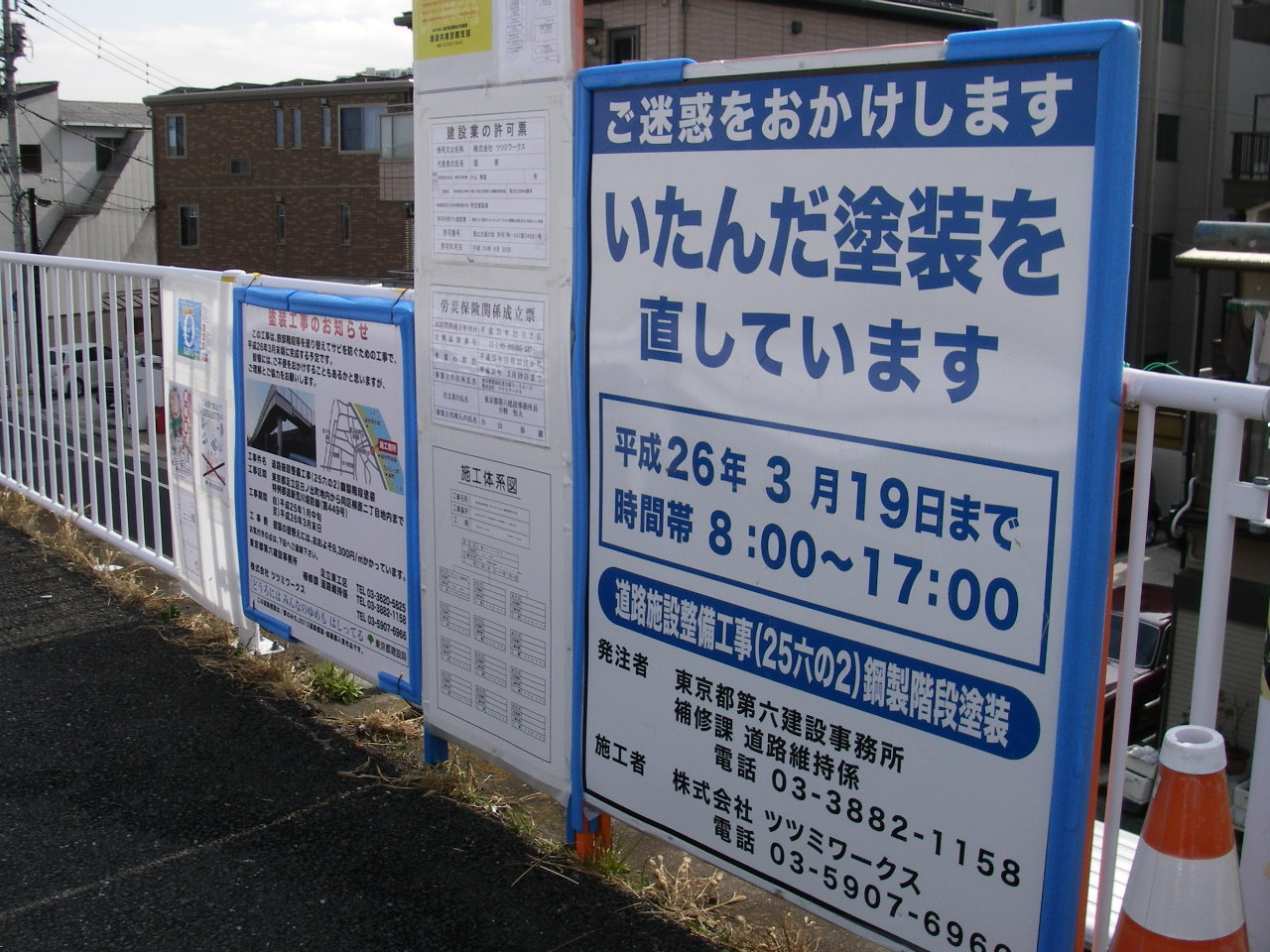 この工事は北原工業㈱、㈱鈴木塗装工務店と㈱ツツミワークスの3社JVで東京都から入札で請け負った工事です。