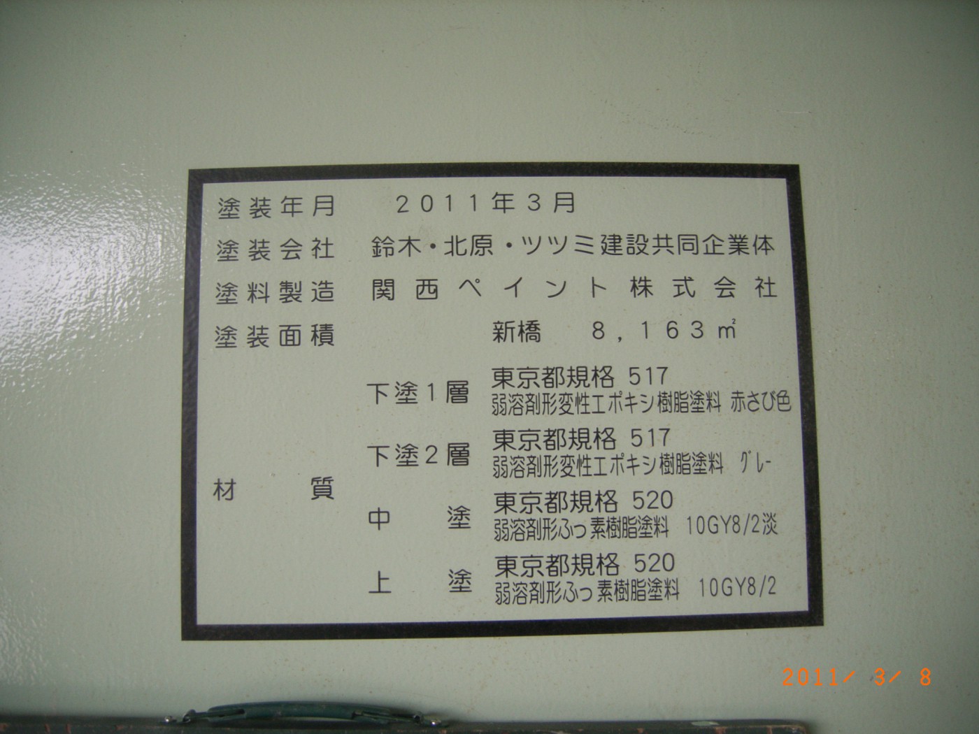 橋梁塗装工事ではどこの会社がどのような材料を使って仕上げたのかを橋に記載してあります。