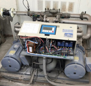・ポンプユニット制御盤や基盤の破損による切り替え運転の不良