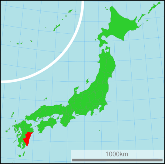 皆様もご存じかと思いますが、宮崎県は九州の南東に位置し、太平洋(日向灘)に沿って南北に縦長の地形となっております。