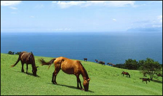 宮崎最南端に位置する串間市の観光名所でもある『都井岬』では、野生の馬が生息しております。