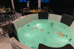 この施設にはお湯が出るジャグジーがテラスに完備されているので、寒い季節でもぽかぽかリラックスできます。