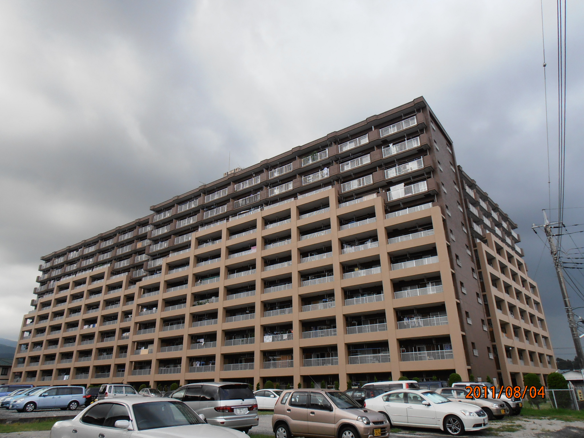 ※当社管理物件の実際に耐震補強されたマンションです。 建物概要:神奈川県・1981年7月竣工・鉄筋コンクリート造・11階建・250戸(旧耐震建物) 外壁色の明るい部分が外付補強タイプで補強された箇所(外部に柱・梁を増設)になります。