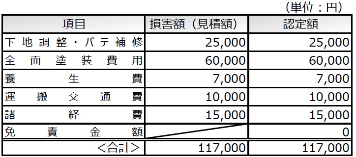 今回落書きを補修する方法としては塗装を選択し、保険会社の査定も妥当と判断されたため申請金額の全額が認定されました。