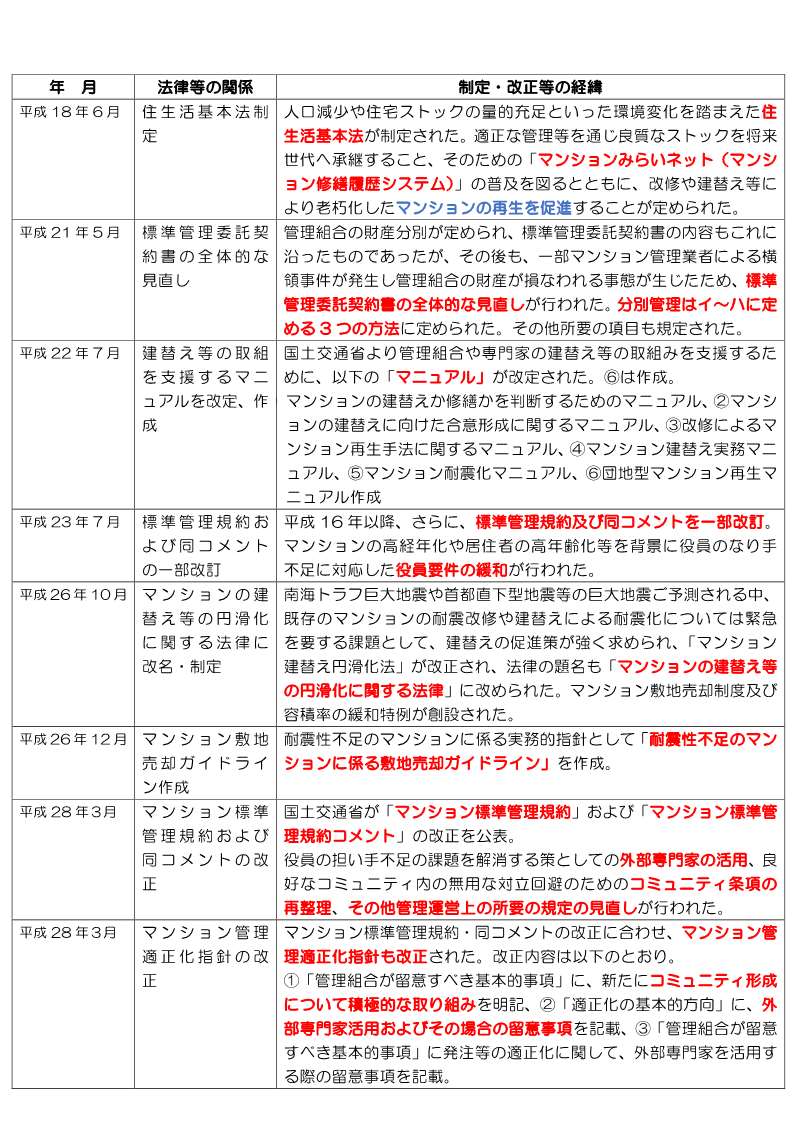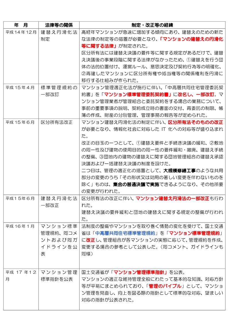 - マンションに関する法律等の制定・改正等の経緯