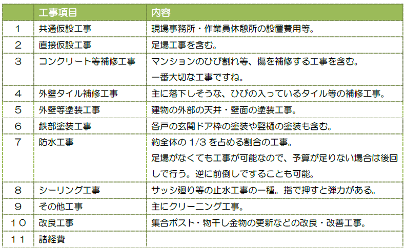 以上の構成が、一般的な工事項目です。
