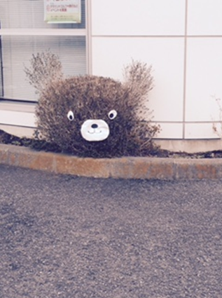 上の写真は「ドウダンツツジ」です。新緑、花期、紅葉と色彩を楽しめる期間が長いです。花は白色、釣り鐘のような感じで5mm程度の花が咲きます。12月には真っ赤に紅葉します。これは、散歩途中のとある町での光景です。何となく微笑ましく思いませんか。「ドウダンツツジ」に耳の部分を残していますね。それとクマさんの目と口鼻を描いた紙を輪ゴムで止めています。動物の顔をイラスト風に描き、小枝に取り付けるだけの簡単なものです。クマ、パンダ、ウサギ、タヌキさんなども面白いかもしれません。ドウダンツツジの春の緑、紅葉の赤をバックにしたクマさんのイラストも違った表現ができそうです。