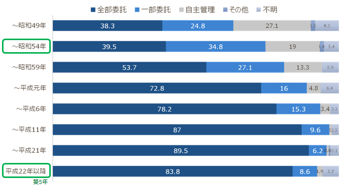 自主管理のマンションが全体の3割もあった時代と比べ、昭和57年以降、マンションを取り巻く環境は変化してきました。