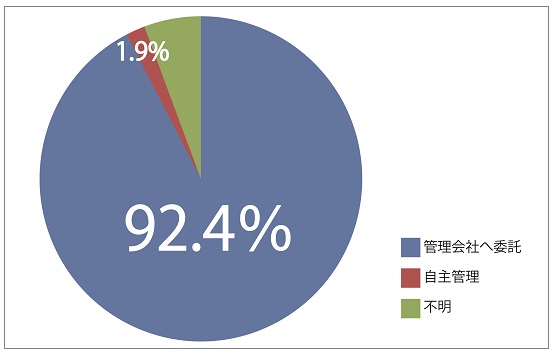 日本全国に約600万戸あるマンションで、自主管理をしているマンションは1.9%、その他の92.4%のマンションは管理会社に委託をしています。