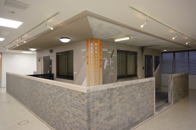 3Fにあるのは外壁タイルのリフォームや共用部・専有部のリフォーム、バルコニーのリフォームといったなかなか比較することができない劣化状況から修繕方法や手順・修繕後の状態を展示しております。