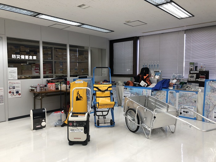 同じく3Fにあるのは、非常食や簡易防災キット・ガス発電機といった充実した防災対策を体験できるエリアになっております。