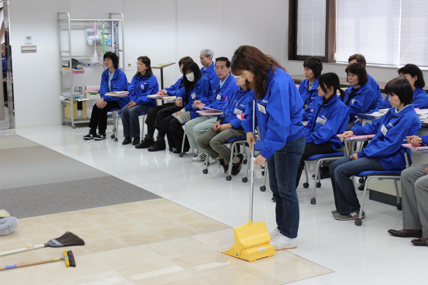 様々な道具を利用し、異なる床材・汚れに対して効率よく綺麗にすることができる清掃方法を学びます。