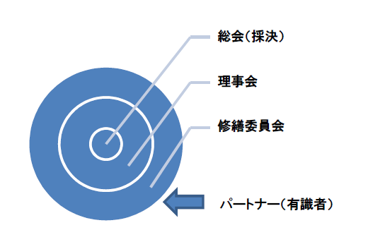 下図に概念図を示しましたが、基本は理事会が中心となり、有識者等のパートナーからアドバイスを受けたり、理事会の諮問機関としての修繕委員会を設置して行います。