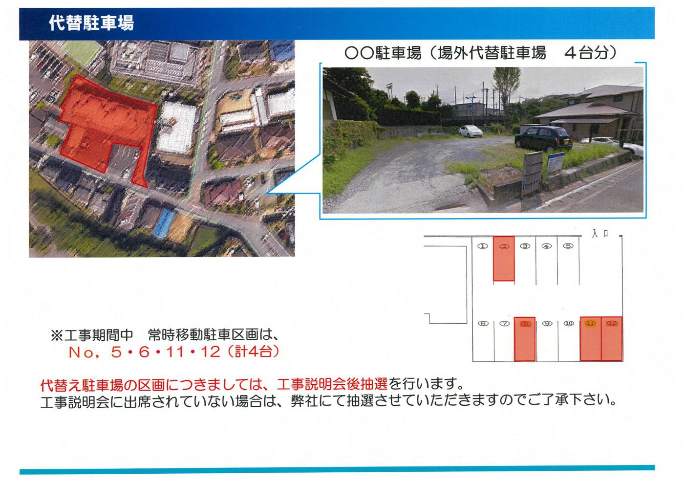 また、駐車場移動について、工事業者・工事金額決定の総会にて告知しておくとより良いと思います。