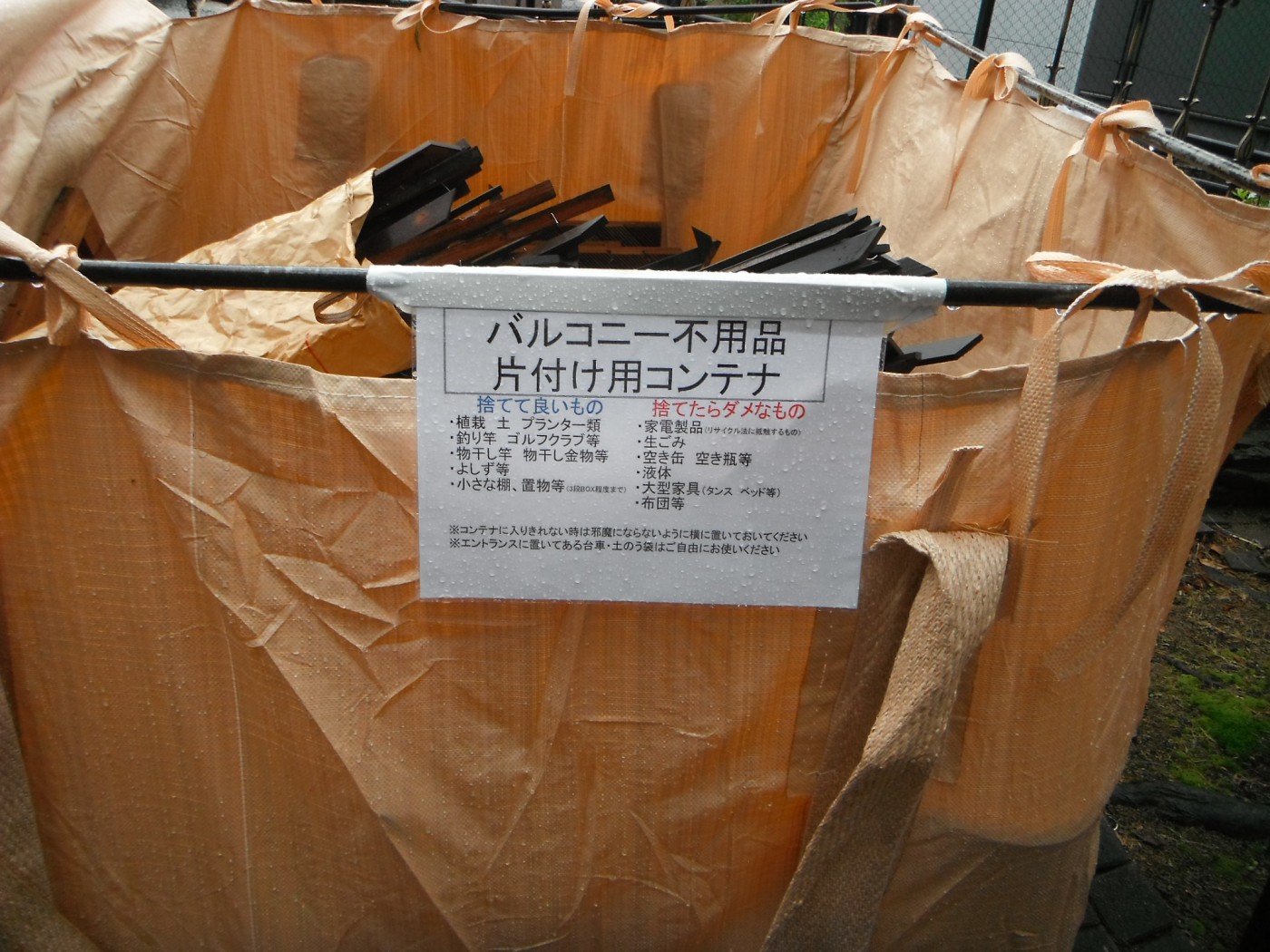 具体的には、現場事務所・作業員詰所(休憩所)・資材用倉庫・仮設トイレ(大規模修繕の場合は、臭いなどの問題から水洗とすることが多いです。水洗と指定すると良いでしょう。)・産廃処分費・工事用水道・工事用電気・居住者用乾燥機などがあります。