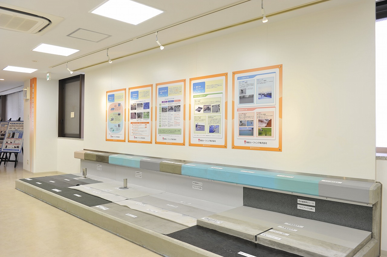 既存下地が露出アスファルト防水や露出ゴムシート防水と下地の状況をあまり選びません。(下写真参照 撮影場所:あなぶきPMアカデミー)