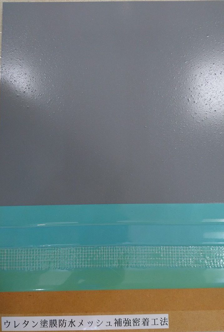ウレタン防水層とウレタン防水層の間にメッシュを入れることにより、動きに対して強くする工法です。
