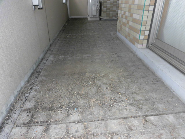 長年設置されたままですので、バルコニー床タイルの下側にはたくさんのほこりなどが堆積いたしておりますので、この機会に取外しをお勧めいたします。