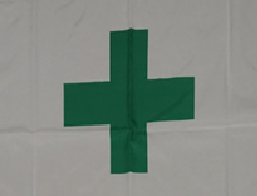 安全旗=記載されているのは緑十字であり工事の安全祈願を意味します。
