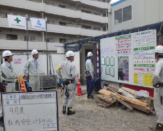 ・現場の巡回 ・・現場の責任者が現場内を巡回し、安全に問題が無いか確認します。