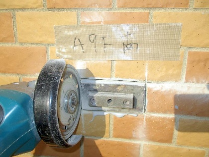 ②正確に、「4,275㎟」当たりの荷重力を測定する為に、「鋼製アタッチメント」の縁に沿って下地コンクリートをコンクリートカッターで切断し、周囲と絶縁します。