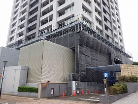 またマンションによっては専用庭やルーフバルコニー等専用使用権のあるスペースでもマンション建物沿いに設置されている私物は直接仮設に干渉し、直接仮設の設置が行えなかったり、汚損破損に繋がります。