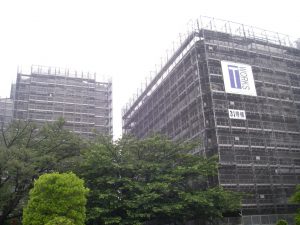 大規模修繕工事着工後、私物のお片付けが完了し、実際に直接仮設が開始される段階まで来ている状況ではないかと思います。