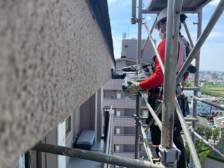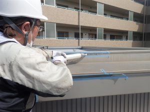 『大規模修繕工事実施編 直接仮設 下地・タイル補修工事 シーリング工事①』です。