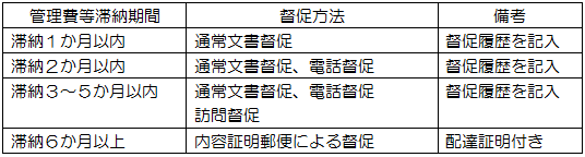 - 初期段階の場合「管理費が未納であること」について、注意喚起の督促