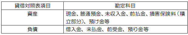 主な勘定科目は次のとおりです。