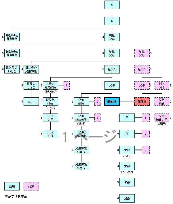 ③契約者の六親等内の血族と三親等内の姻族(詳細は下図)